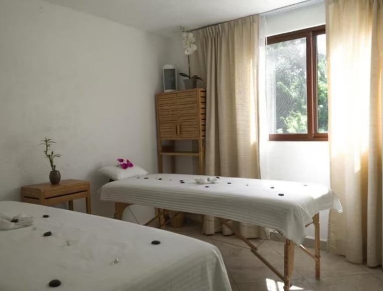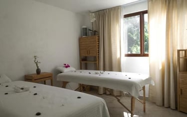 Salas de tratamiento para parejas. Ofrecemos masajes, además de tratamientos relajantes como aromaterapia.