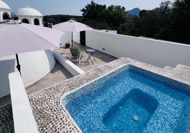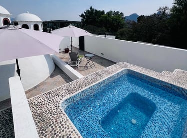 Nuestra área de alberca e hidromasaje está diseñada como un espacio de descanso, ideal para liberar tensiones y disfrutar momentos de tranquilidad durante tu estancia.